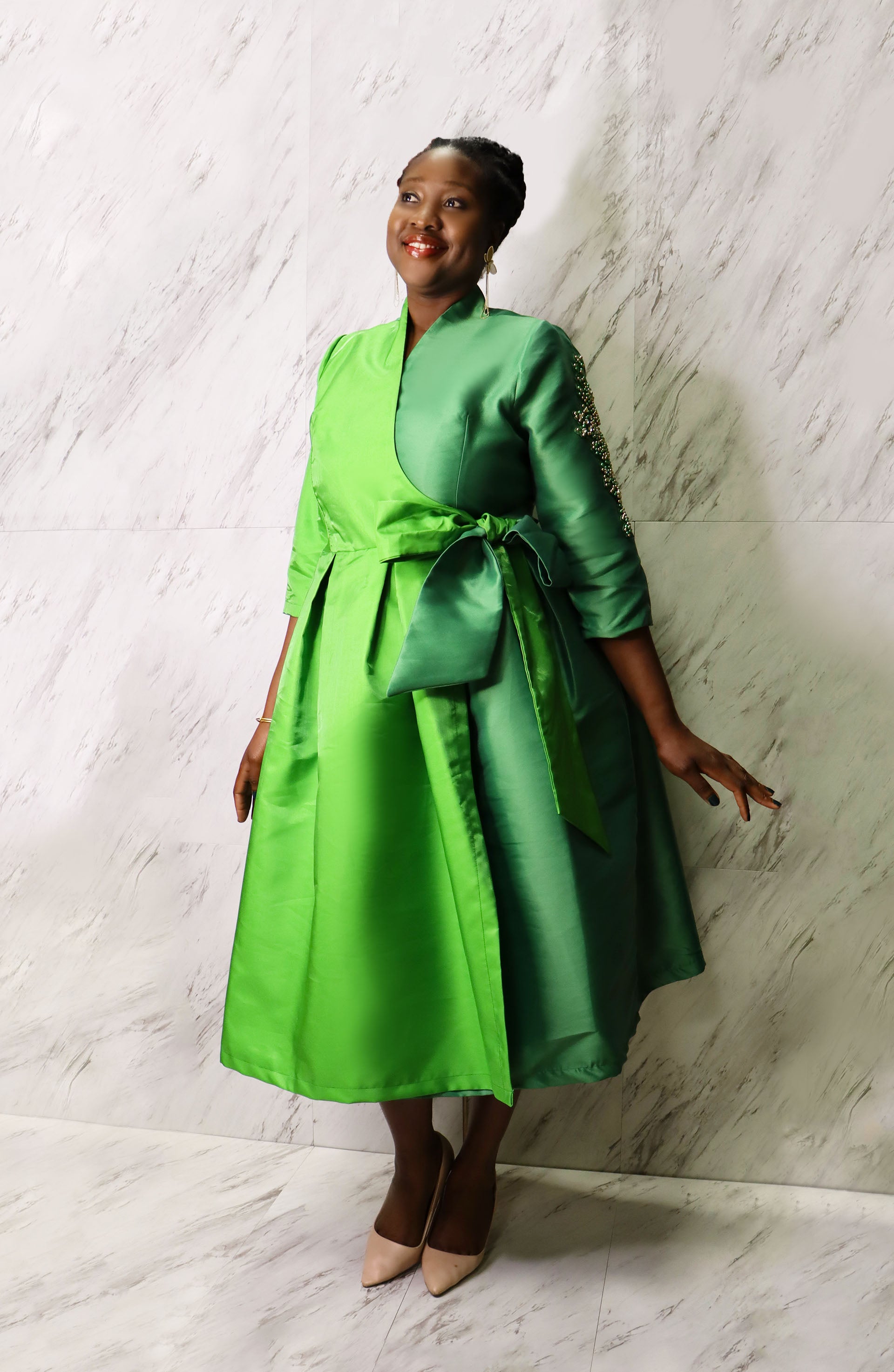 Step out in style with the Green Colourblock Midi Wrap Dress, featuring two vibrant shades of green that blend effortlessly for a fresh, eye-catching look. The satin fabric feels smooth against your skin, while a delicate beaded embellishment on one sleeve adds a touch of sparkle and charm. Wrap it around and tie a neat bow to flatter your silhouette with a playful twist. Perfect for turning heads at any occasion!