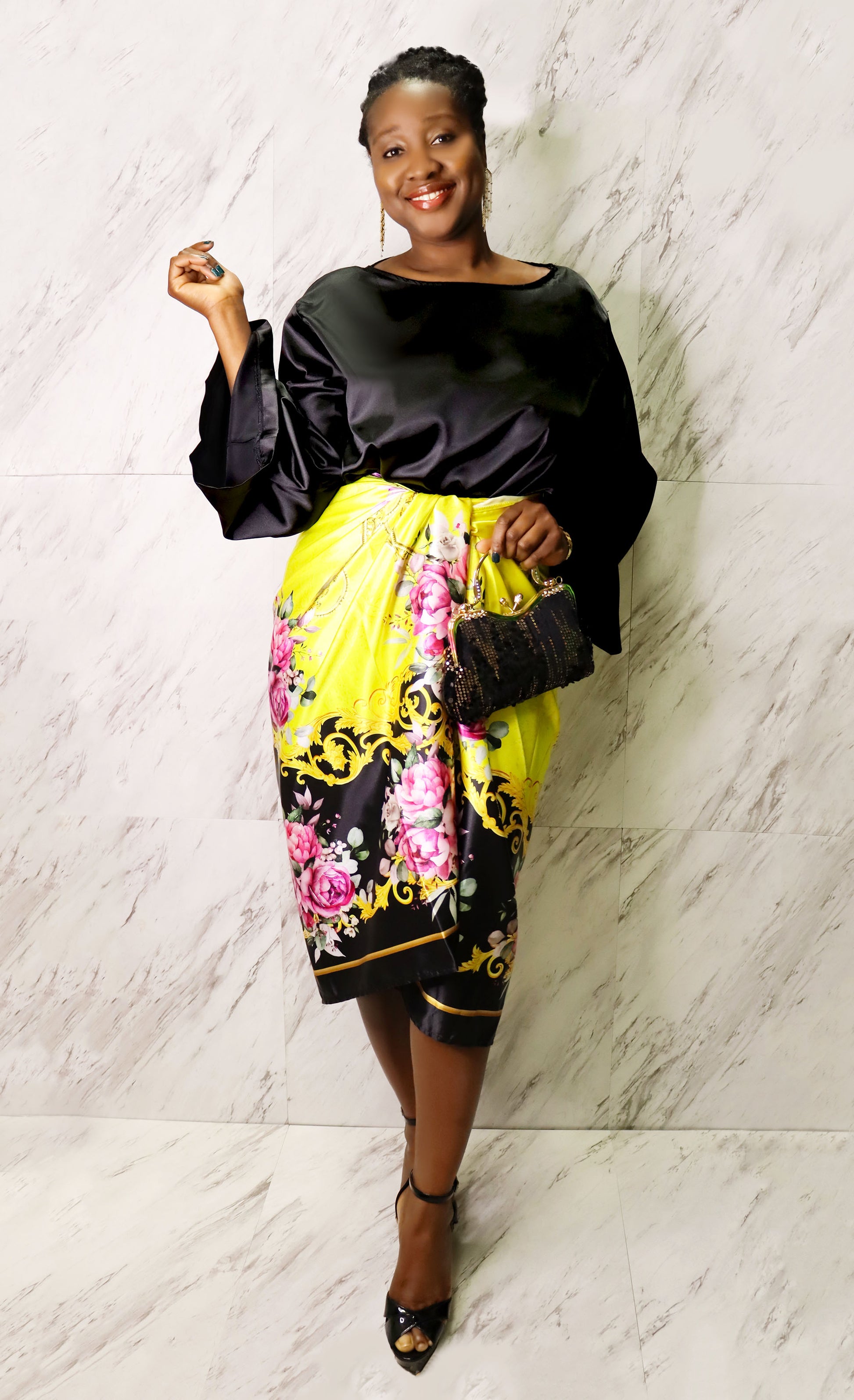 Elevate your style with this gorgeous Silk Graphic Print Wrap-Skirt Set. The long, solid-colored silk top features wide sleeves for a breezy, elegant look, while the vibrant graphic print wrap skirt lets you tie it your way, adding a fun twist to your outfit. Perfect for mixing comfort with creative flair.
